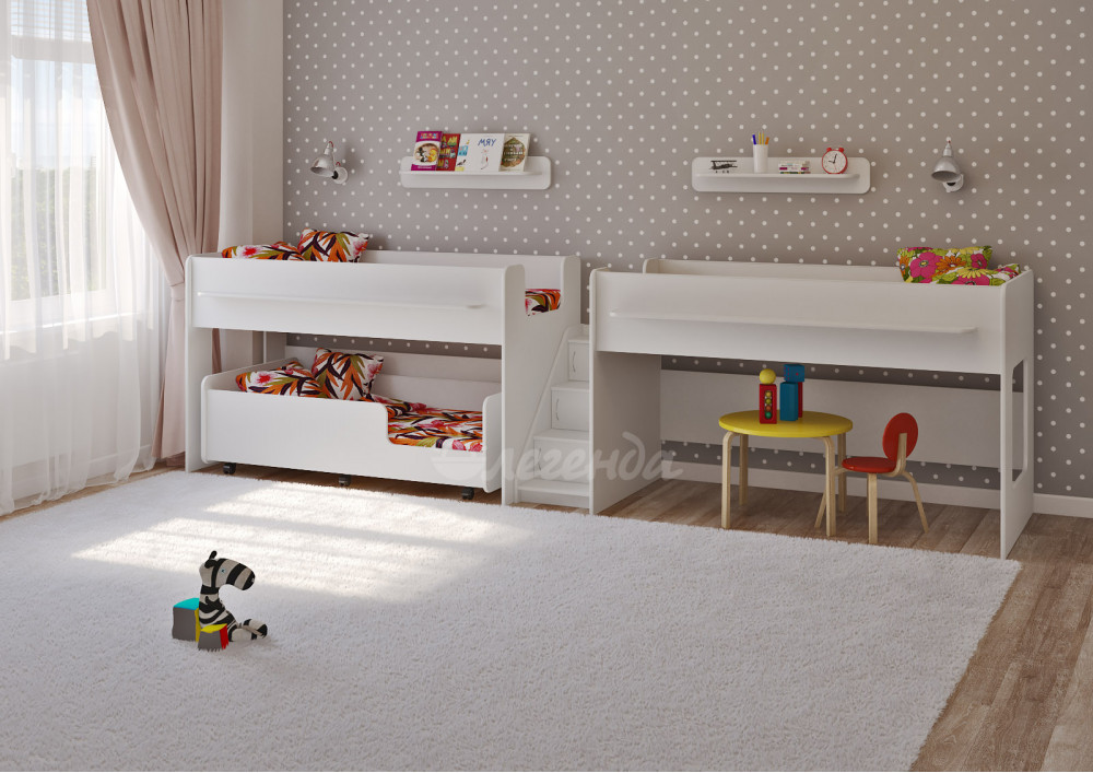Трехъярусная кровать Легенда 23.5 белая - интересный и оригинальный комплект для троих детей.